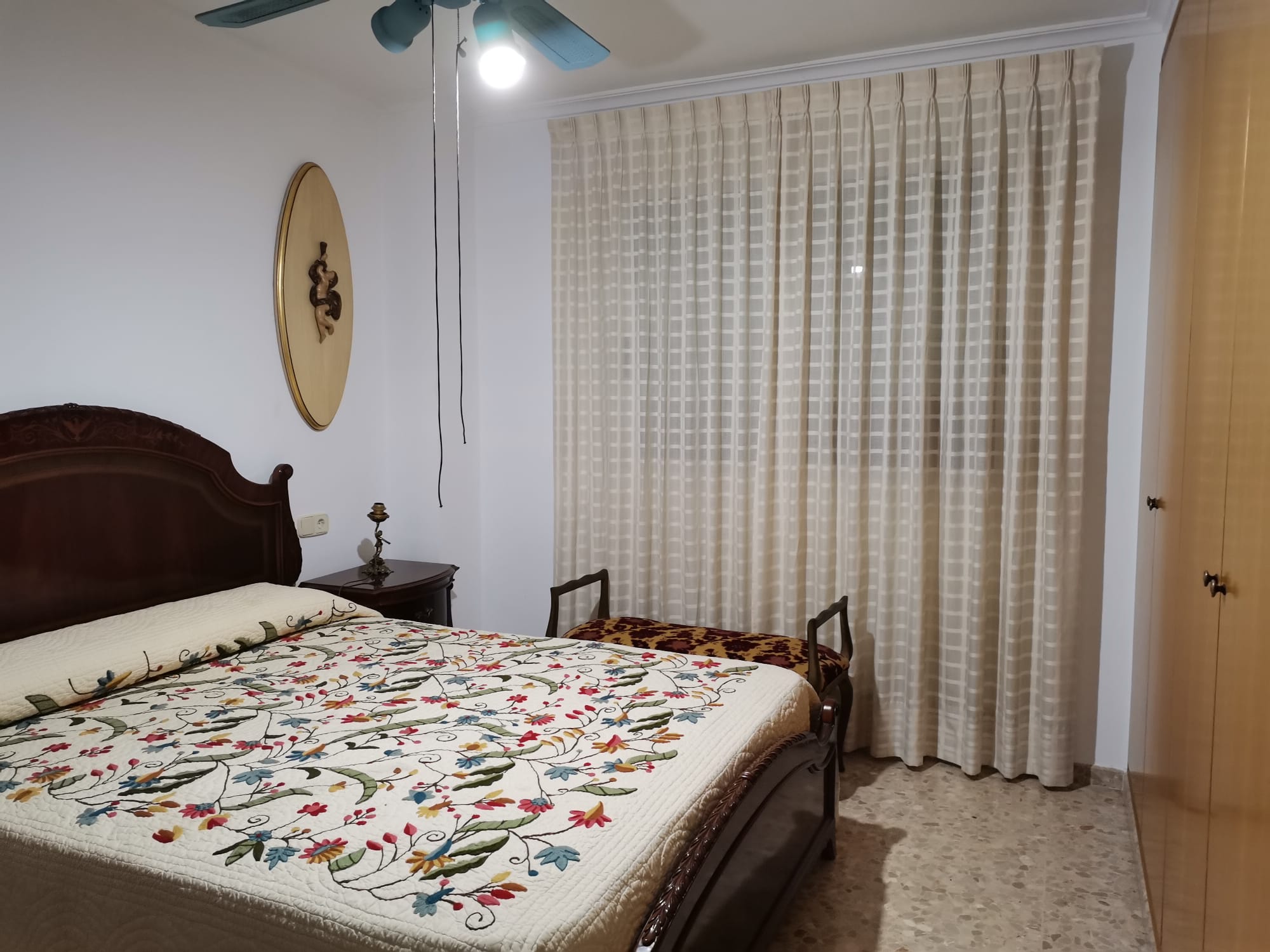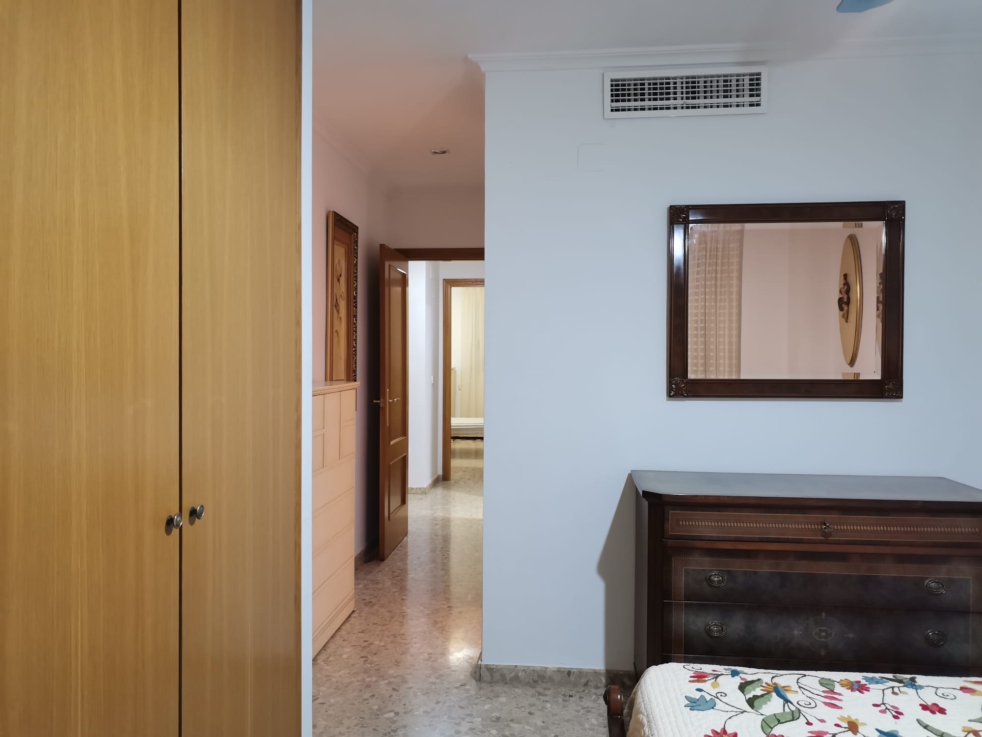 Piso a la venta en Benetusser seminuevo, con ascensor a cota cero, en segunda altura, y orientado al este, se vende vacío. Dispone de tres dormitorios, dos baños (uno con bañera en la habitación de matrimonio y otro con plato de ducha), amplia cocina con galería, y salón comedor. Cuenta con calefacción y aire acondicionado por conductos, puerta blindada, suelo de terrazo, ventanales de climalit, puertas de roble, y paredes lisas. Gastos de comunidad de 35€/mes. Suministros de luz y agua. La finca tiene gas natural.