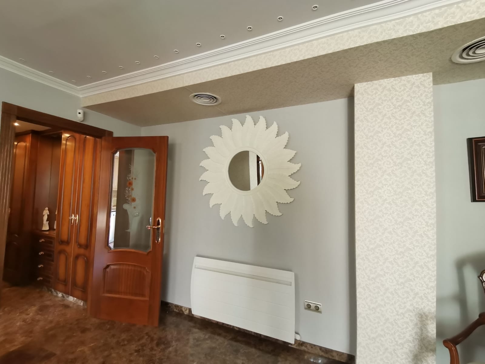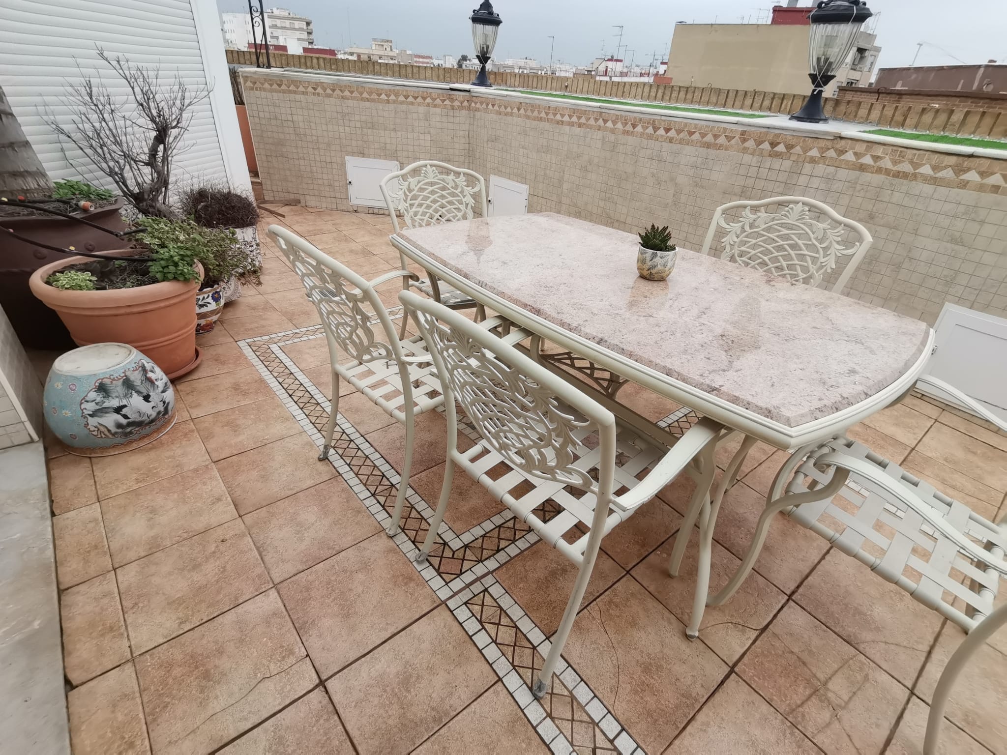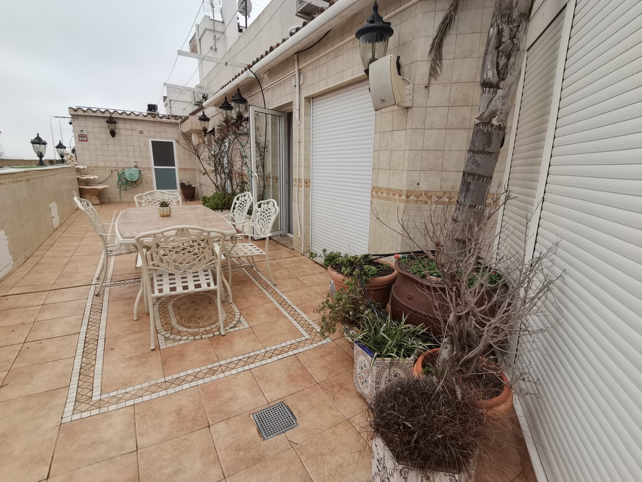 El ático cuenta con nueve armarios empotrados de madera de nogal al igual que las puertas, también tiene un impresionante suelo de mármol y porcelánico en cocina. Dispone de gran seguridad gracias a la puerta acorazada de entrada a la vivienda. El aire acondicionado frío/calor es por conductos, las persianas del comedor motorizadas y, para más encanto, con el hilo musical se puede escuchar música en toda la vivienda (incluida la terraza).