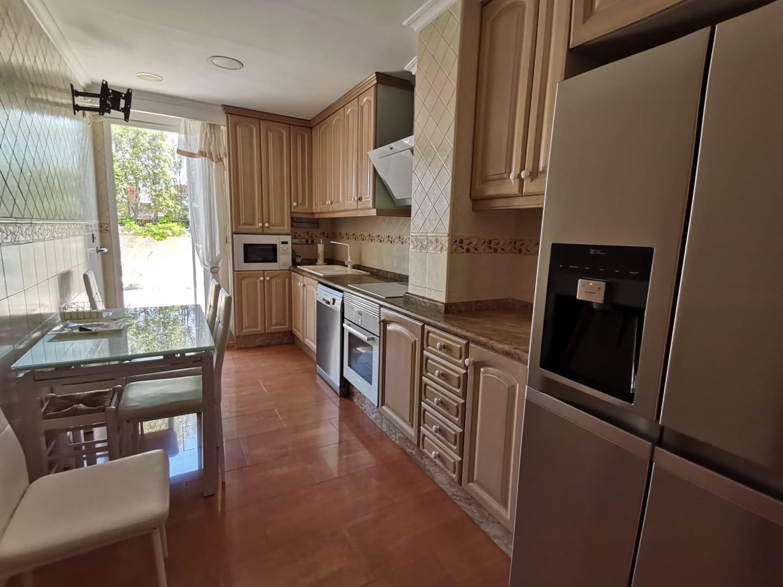 Se trata de un Ático muy luminoso que dispone de tres dormitorios, amplia cocina y salón comedor. Todos ellos tienen acceso a la espaciosa terraza en la que hay otra cocina para realizar allí cenas con unas vistas espectaculares. La cocina interior es vitro y la de la terraza es de gas natural.